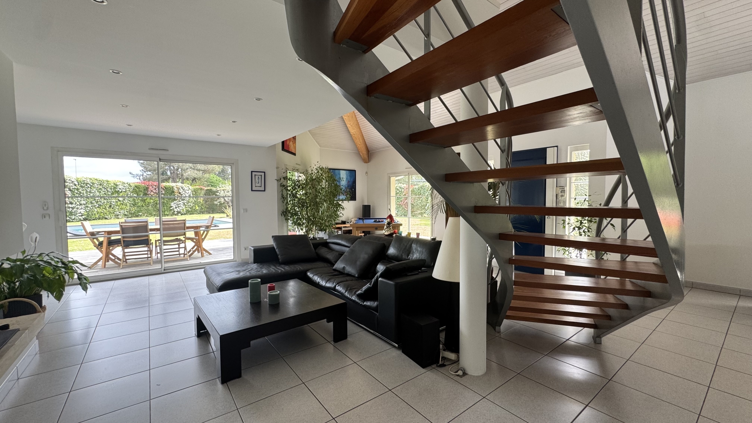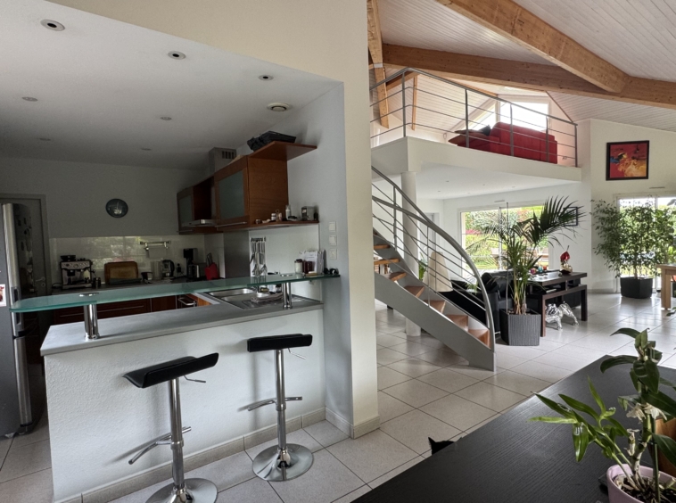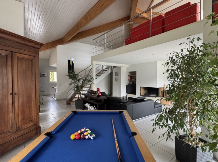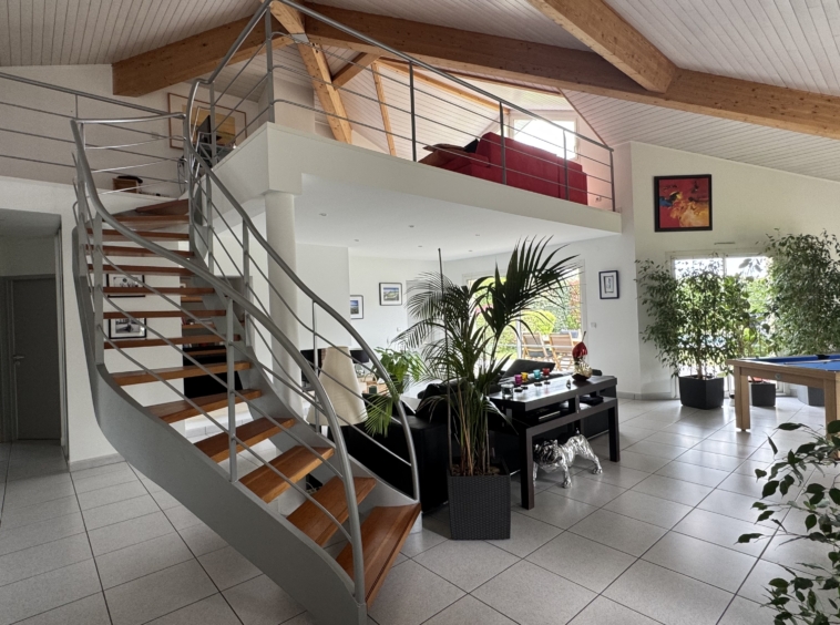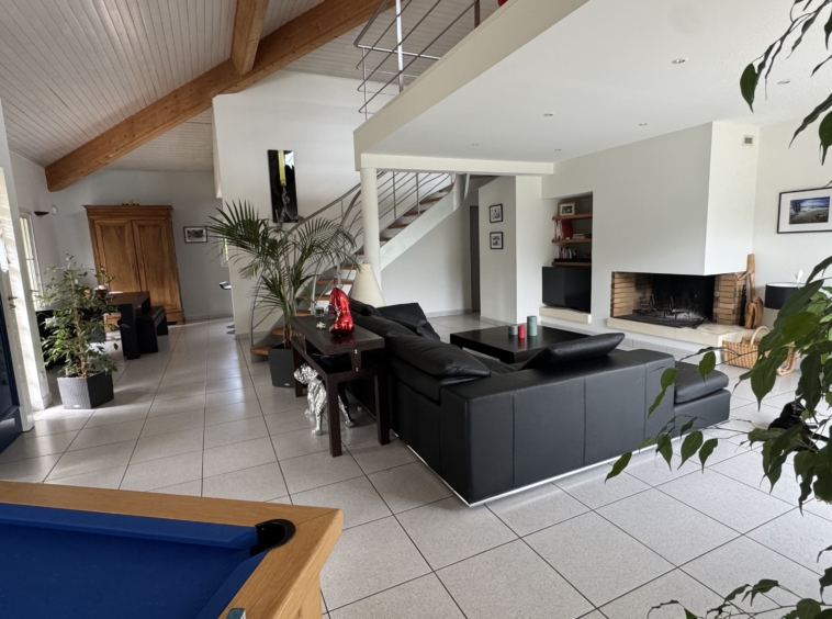 Implantée sur une parcelle arborée d’environ 1425 m², cette maison d’architecte séduit par sa luminosité, ses volumes généreux et son cadre de vie privilégié.