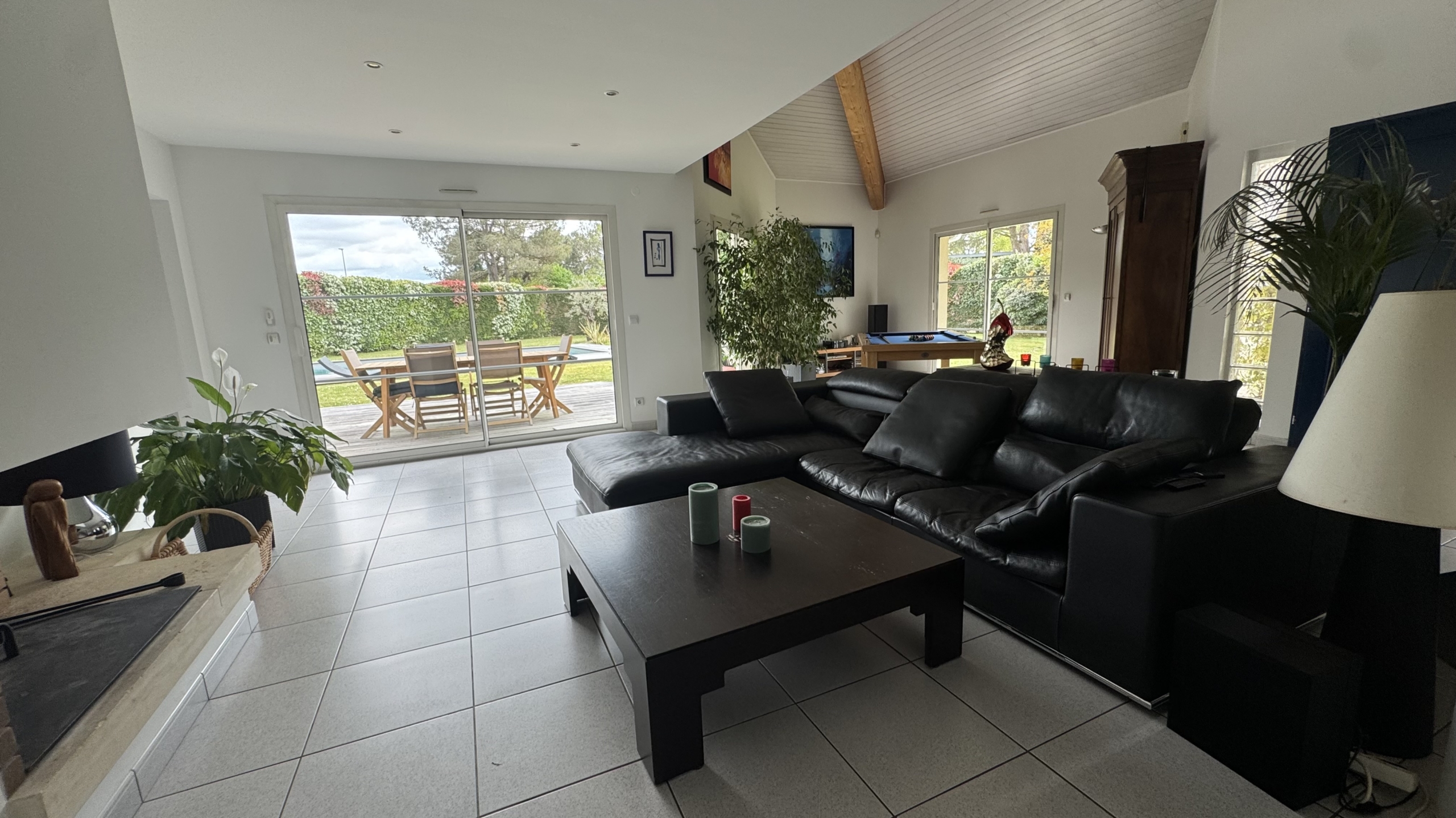 Le salon ouvre directement sur une grande terrasse donnant accès au  jardin.